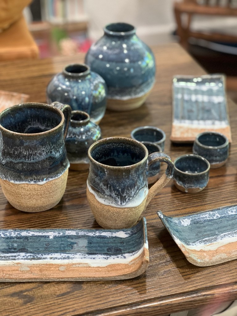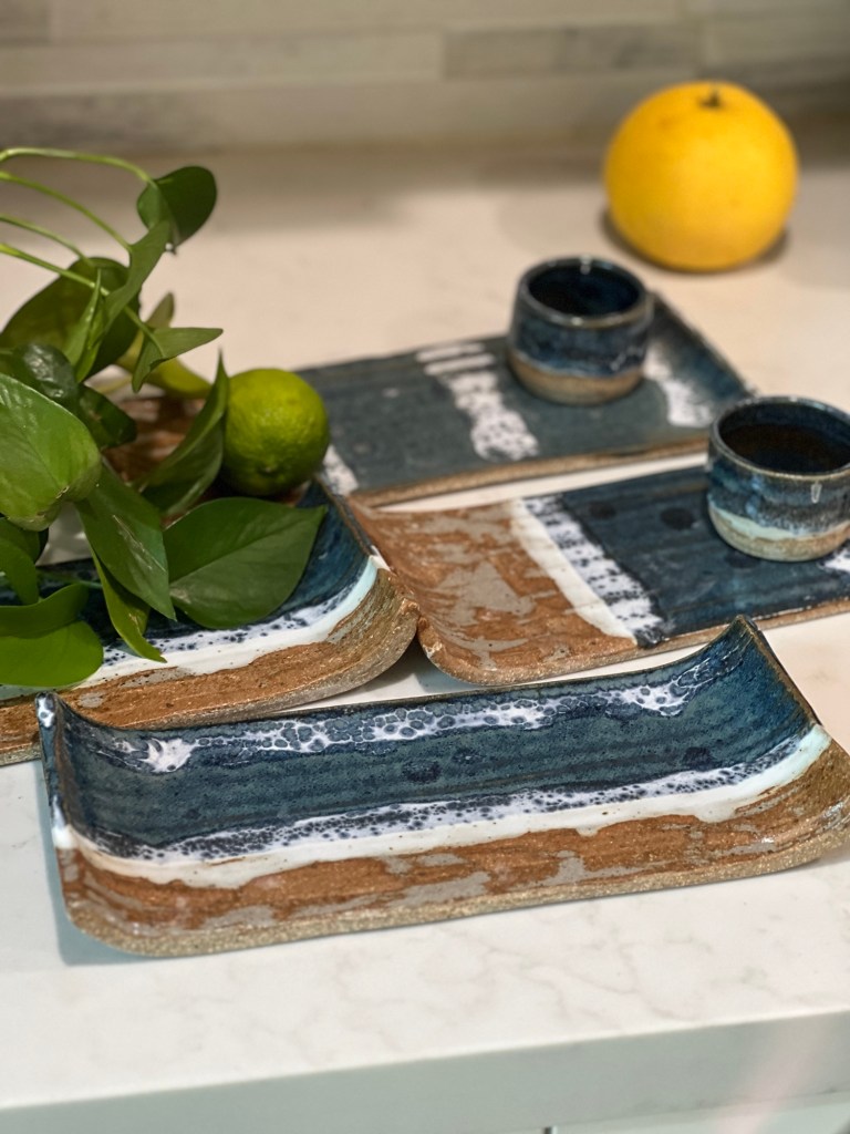 Beach series These mugs are inspired by the beautiful beaches that we have in California. The glaze pours over the clay giving an effect of a wave crashing onto a sandy beach. Bring beach to your home…