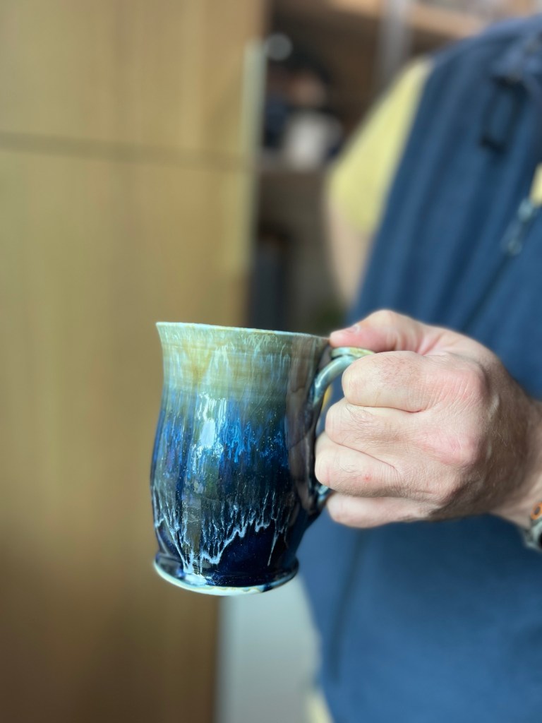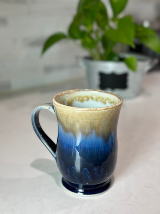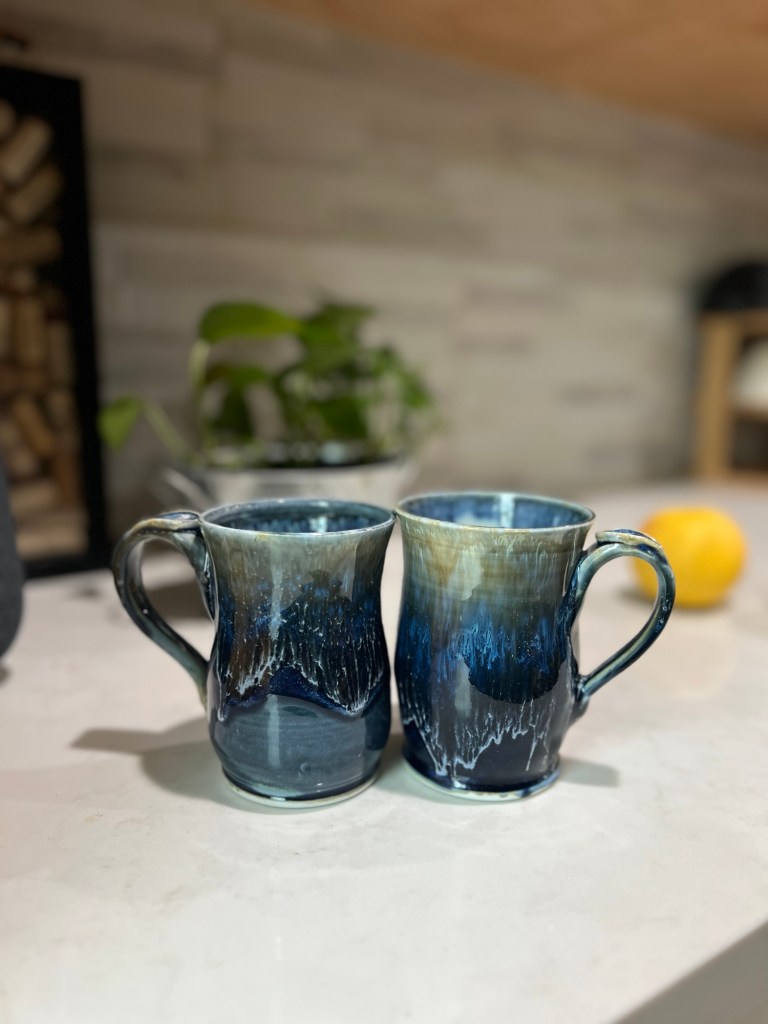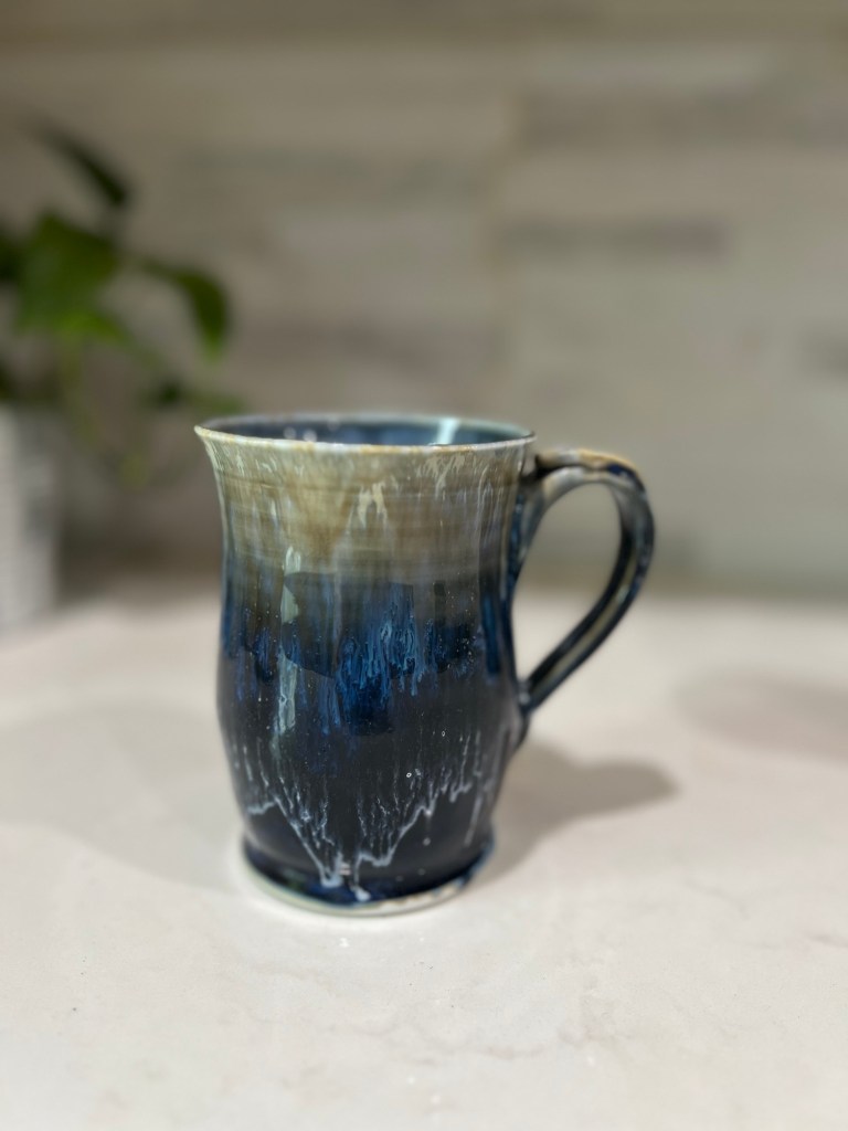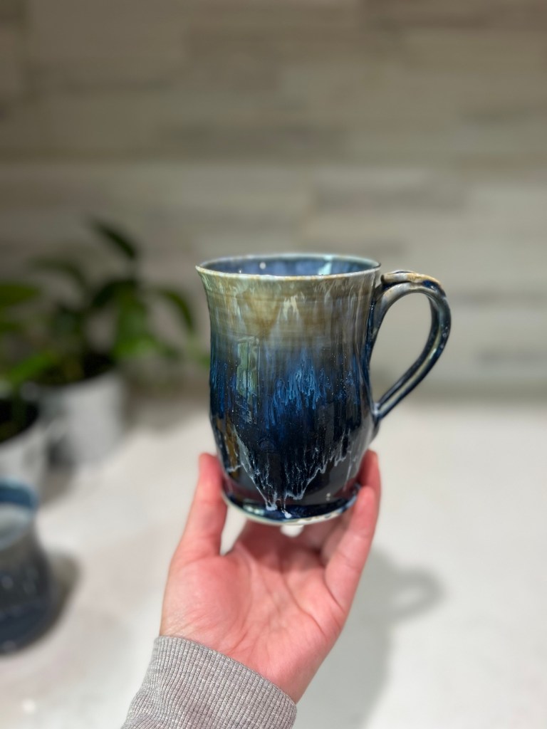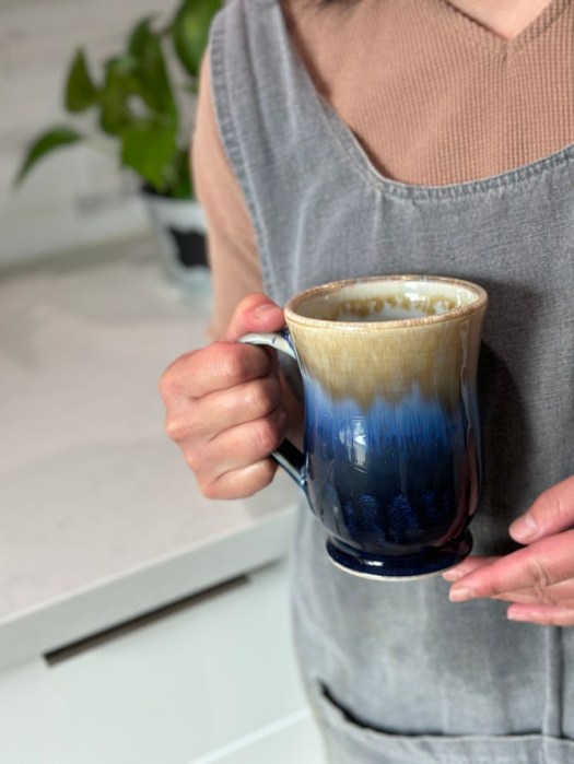 The porcelain clay body beautifully shows off the rich glossy blue glaze.